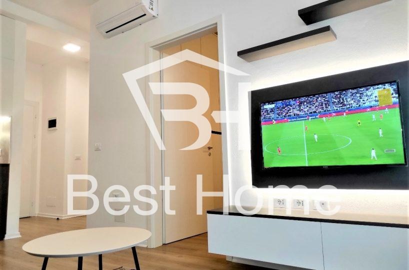 December 21, Kontakt Complex, One bedroom apartment for rent, furnished, surface area 65 m², 10th floor (not the last) in the new building with elevator. The apartment is organized by entrance corridor, bedroom, living room, kitchen, bathroom, balcony, air conditioner, and all laid with parquet.