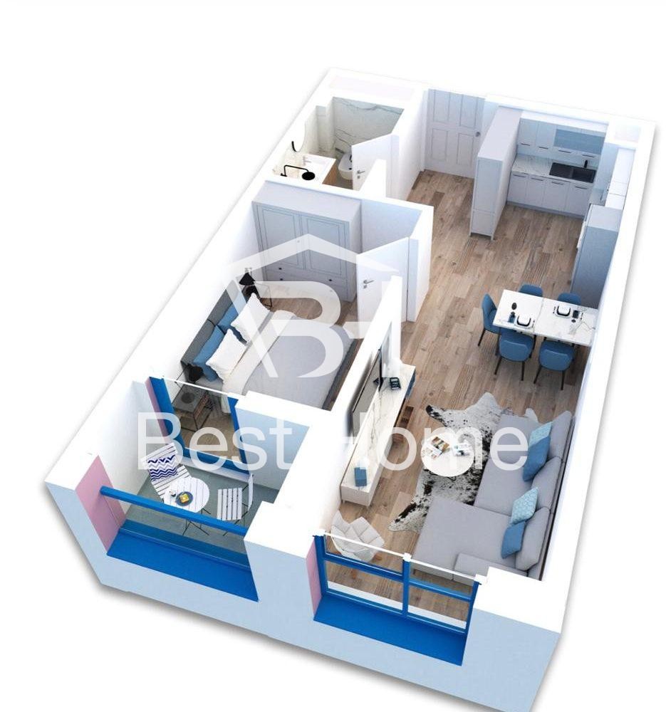 Ali Demi, near Mangalem Complex, One bedroom apartment for rent, empty, surface area 60 m², 3rd floor in a new building with elevator. The apartment is organized by an entrance hall, bedroom, living room, kitchen, toilet, balcony, parking post, floor -1, and all laid with parquet.