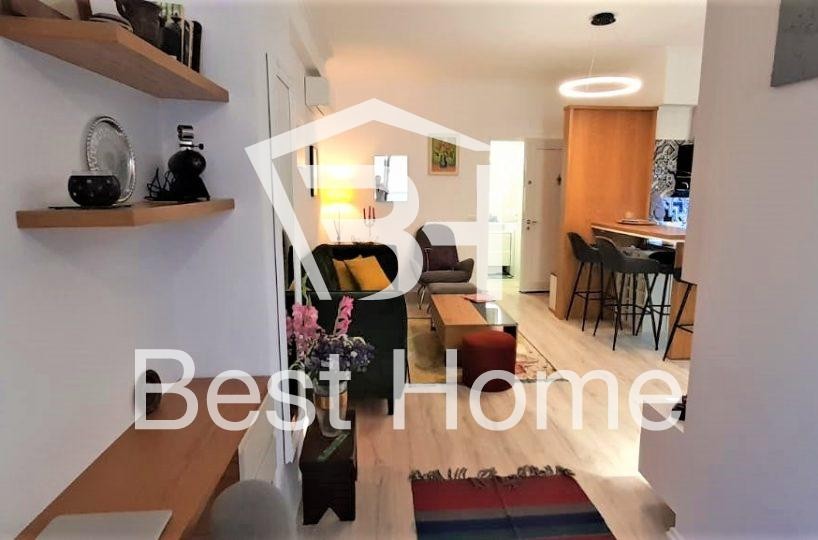 Block, near Spar Supermarket, One bedroom apartment for rent, contemporary furnished, surface area 68 m², 4th floor in a new building with elevator. The apartment is organized by a connecting corridor, bedroom, living room, kitchen, balcony, 2 air conditioners, and all laid with parquet. The apartment also has a parking post at a price of 120 euros. Condition: 2 months rent and a guarantee.