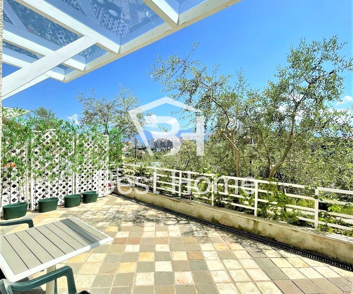 Residence hill of the sun 2, One bedroom apartment for rent, modern furniture, total area 100 m², first floor in the new building with elevator. The apartment is organized by connecting corridor, bedroom, living room, kitchen, toilet, air conditioner, and all paved with parquet. The apartment also has a veranda, garden, and parking included in the price.