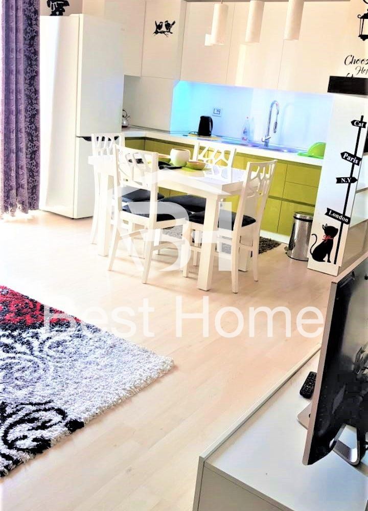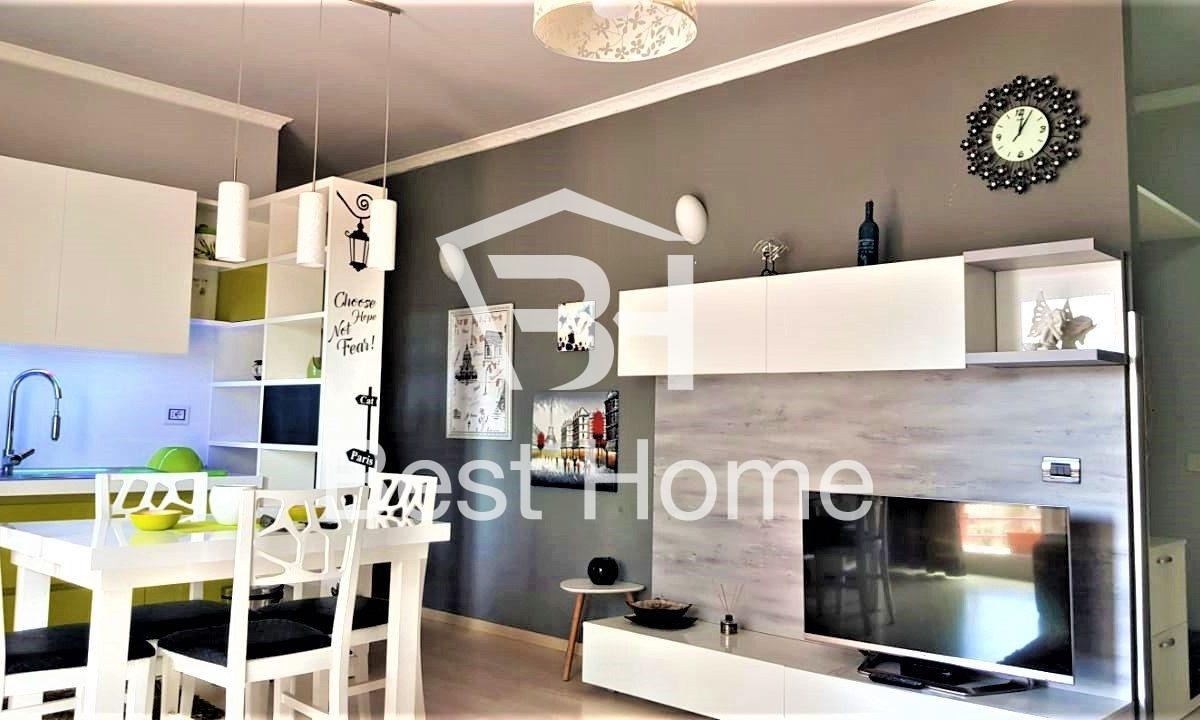 Don Bosko, Kompleksi Vizion +, Shitet apartament 1+1, i mobiluar, siperfaqe 71 m² bruto me Hipoteke, kati i 5 ne pallat te ri me ashensor. Apartamenti organizohet nga korridor lidhes, dhome gjumi, sallon ndenje, ambient gatimi, tualet, ballkon, 2 kondicionere, dhe i shtruar i gjithi me parket. Orientimi Jug-Perendim.