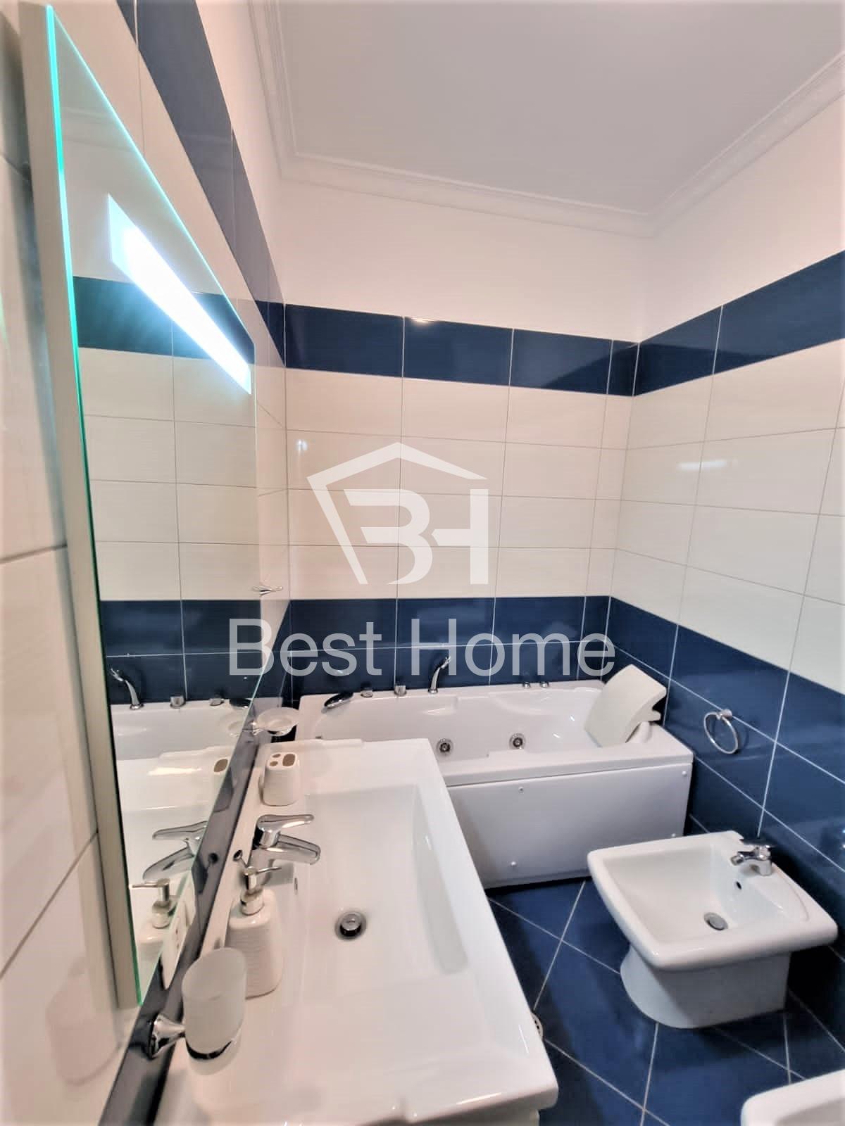 Astir, near Soho Bar, Two bedroom apartment for rent, new unused furniture, surface 90 m², 8th (top) floor in a new building with elevator. The apartment is organized by a connecting corridor, 2 bedrooms, living room, kitchen, 2 bathrooms, balcony, air conditioner, and all laid with parquet.
