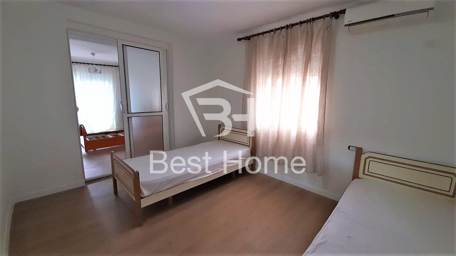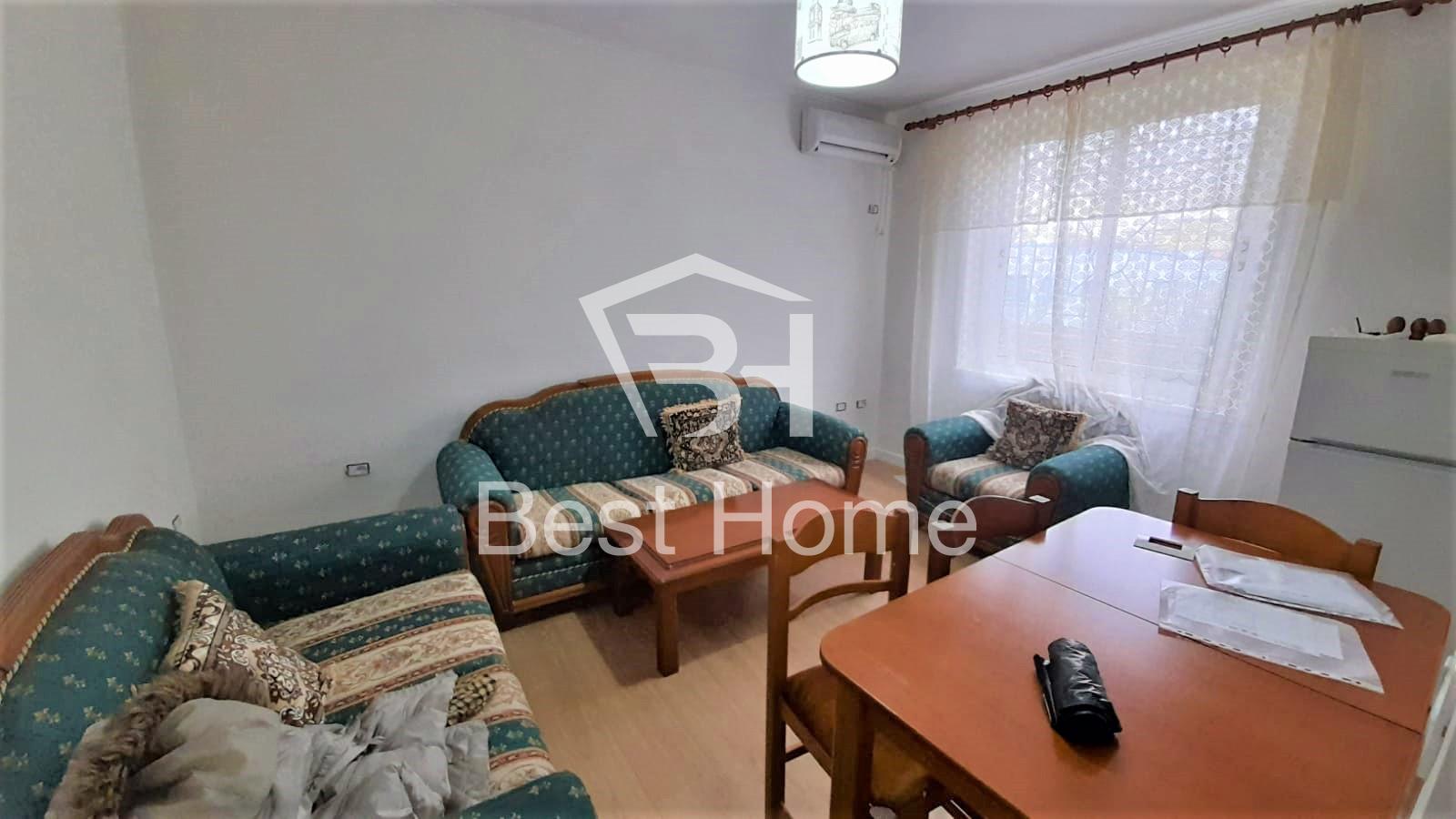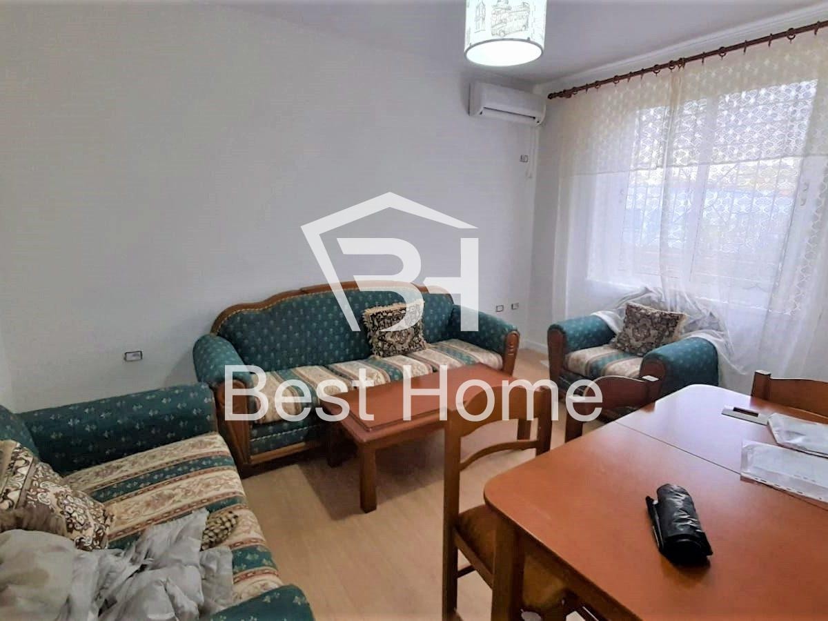 Fortuzi Street, near Ecco Market, Two bedroom apartment for rent, furnished, surface 70 m2, 2nd floor in the old building. The apartment is organized by connecting corridor, 2 bedrooms, living room, kitchen, bathroom, balcony, air conditioner, and all paved with parquet.