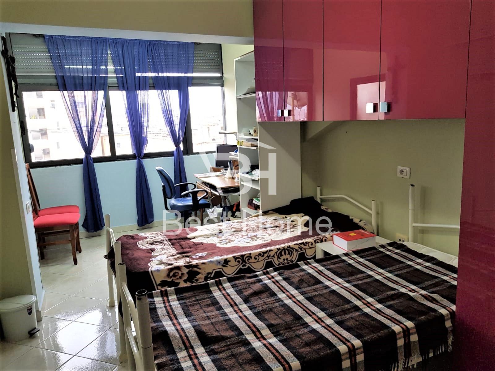 Myslym Shyri, prane Someg dhe Soho Bar, Shitet apartament 2+1, i mobiluar, siperfaqe 100 m² me Hipoteke, kati i 6 ne pallat te vjeter. Apartamenti organizohet nga 2 korridore lidhes, 2 dhoma gjumi, sallon ndenje, ambient gatimi, tualet, ballkon.
