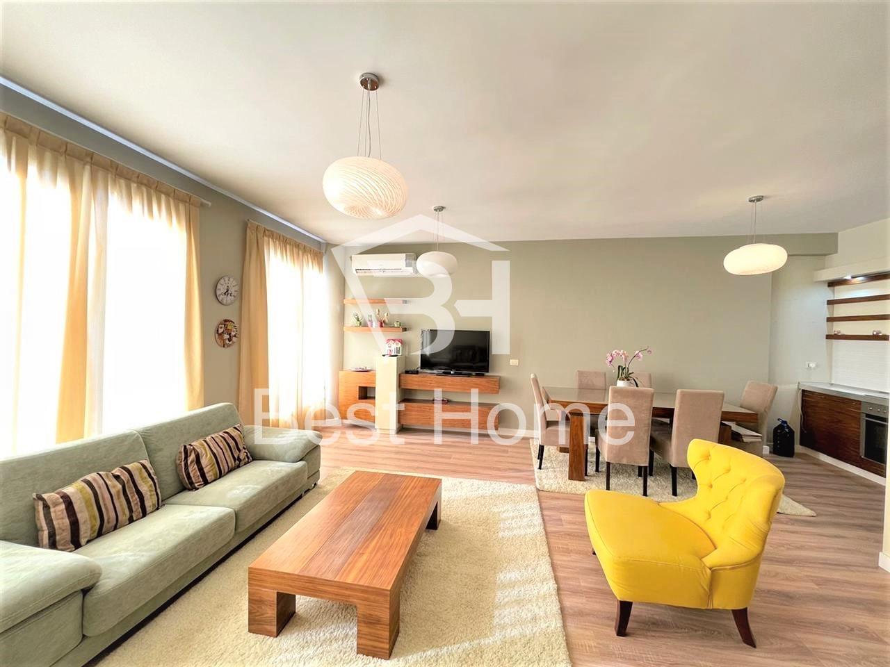 Residence hill of the sun 1, Three bedroom apartment for rent, furnished, 120 m², 3rd floor in the new building. The apartment is organized by connecting corridor, 3 bedrooms, living room, kitchen, 2 bathrooms, balcony, air conditioner, and all paved with parquet.