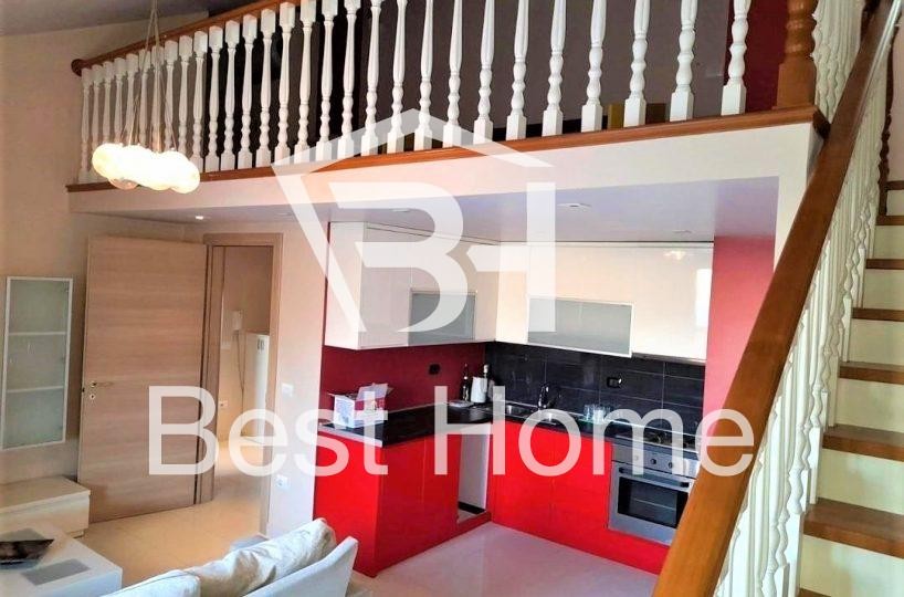 Lake Thate, Two bedroom duplex apartment for rent, furnished, surface 110 m, 4th floor in the new building with elevator. The apartment is organized by hallway, living room, kitchen, 2 bedrooms, 2 bathrooms, air conditioning, garage.