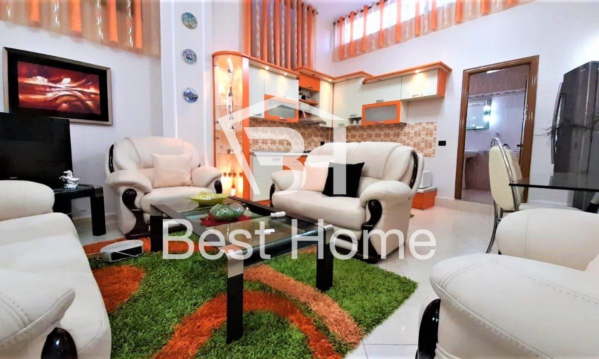 Durres Street, near Shpresa AL, Two bedroom apartment for rent on the first floor of a villa, furnished, surface 90 m2. The apartment is organized by connecting corridor, 2 bedrooms, living room, kitchen, toilet, air conditioner, veranda.
