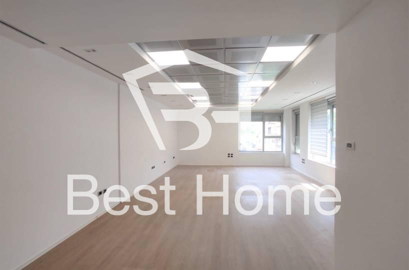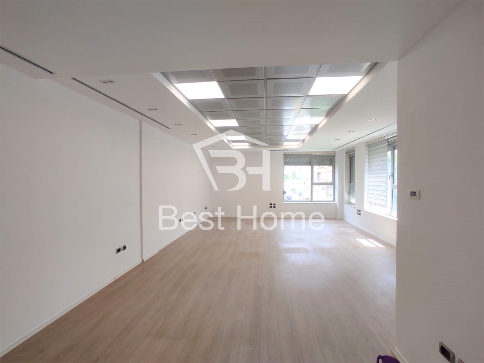 Block, Vaso Pasha Street, Office for rent, empty, surface area 63 m2, 2nd floor in the new building. The office has an open space workspace, toilet with window, glass facade, street edge, all paved with parquet.